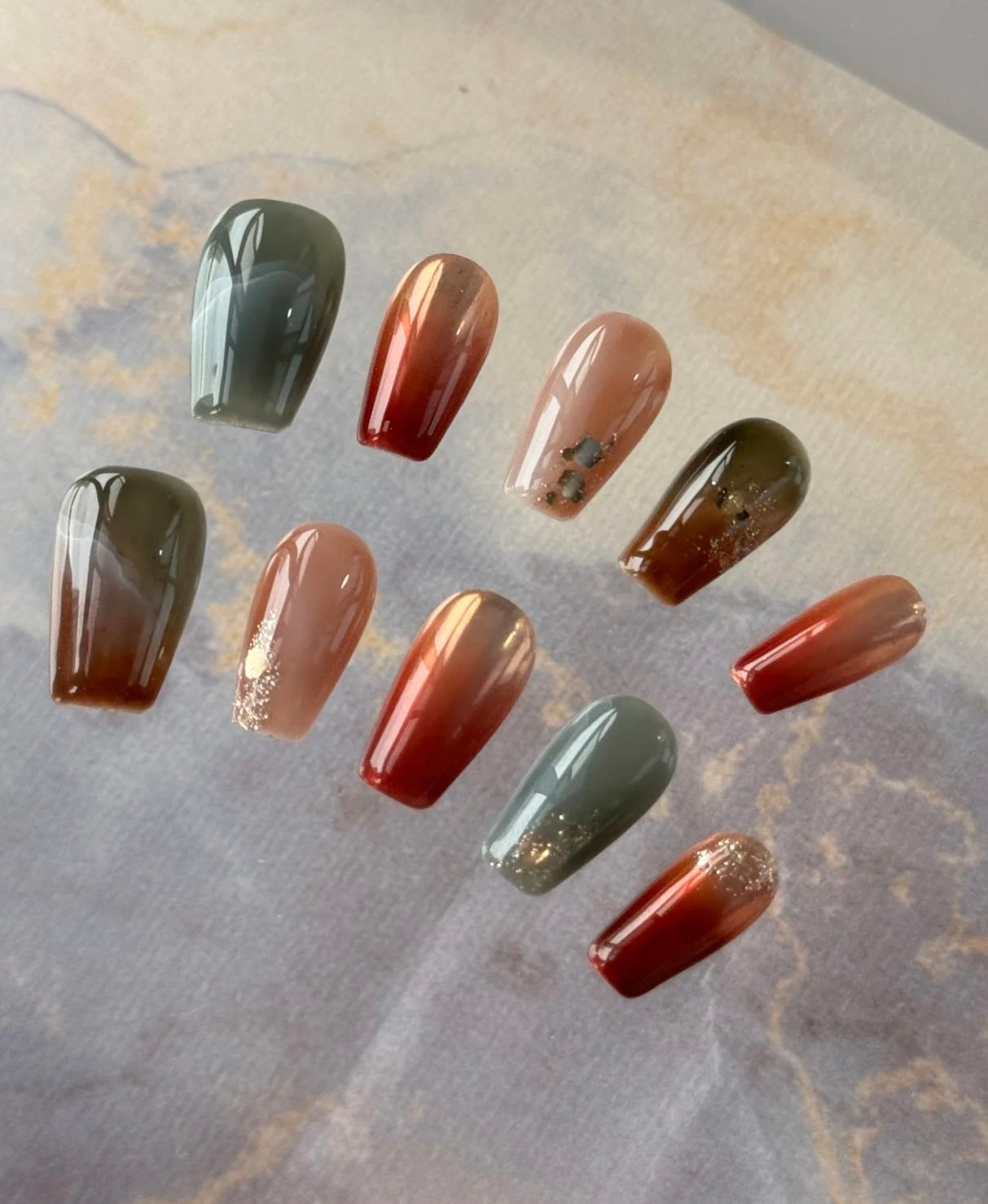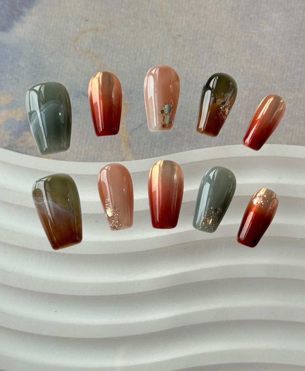 “I wore Wasteland Amber with a leather jacket one night and a satin slip the next—same flood of compliments. The amber smoke with gemstone accents looks like custom salon art, but I did them at home in minutes.”